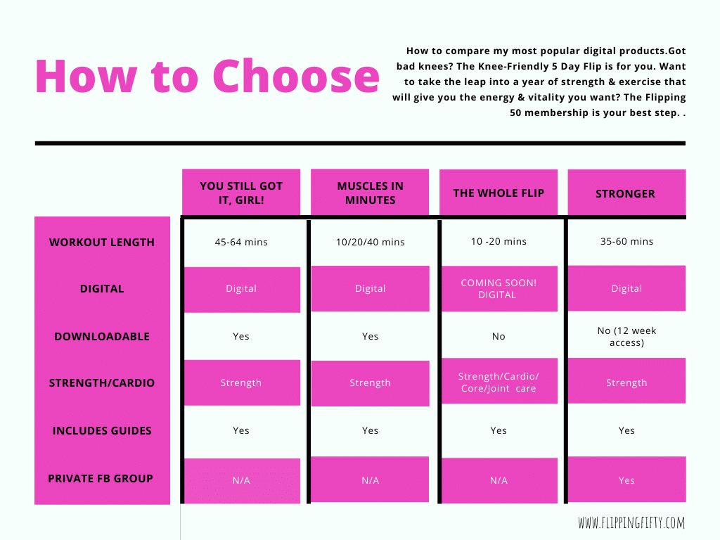 But as someone who loves to create I find myself potentially adding to the confusion instead of adding clarity. In my defense, I stand by the fact that we of course are collectively also diverse! We’re interested in weight loss, belly fat loss, but also same weight just better shape and belly fat loss. We want digital or want DVDs. We want strength training, and we want it all. We run marathons, businesses, run around town, and we also have arthritis, osteoporosis, and fibromyalgia. The best exercise program for a woman over 50 is unique to that woman’s goals, wants, needs, and time just like the best program for a 20 year old, or a 70 year old.
